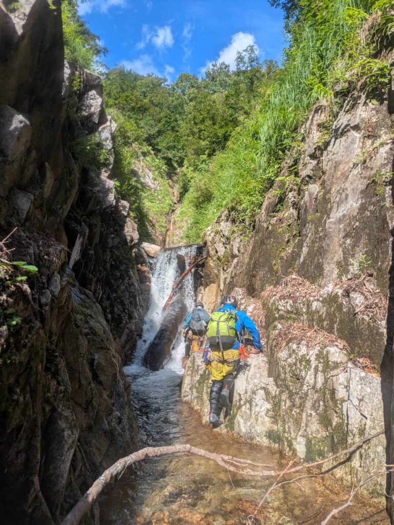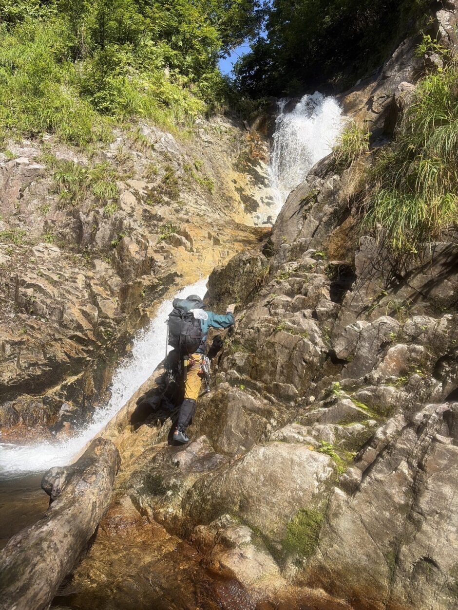 10m滝は右岸ルンゼ状から高巻いて少し懸垂。慣れてる人なら懸垂なしでいけるのかも