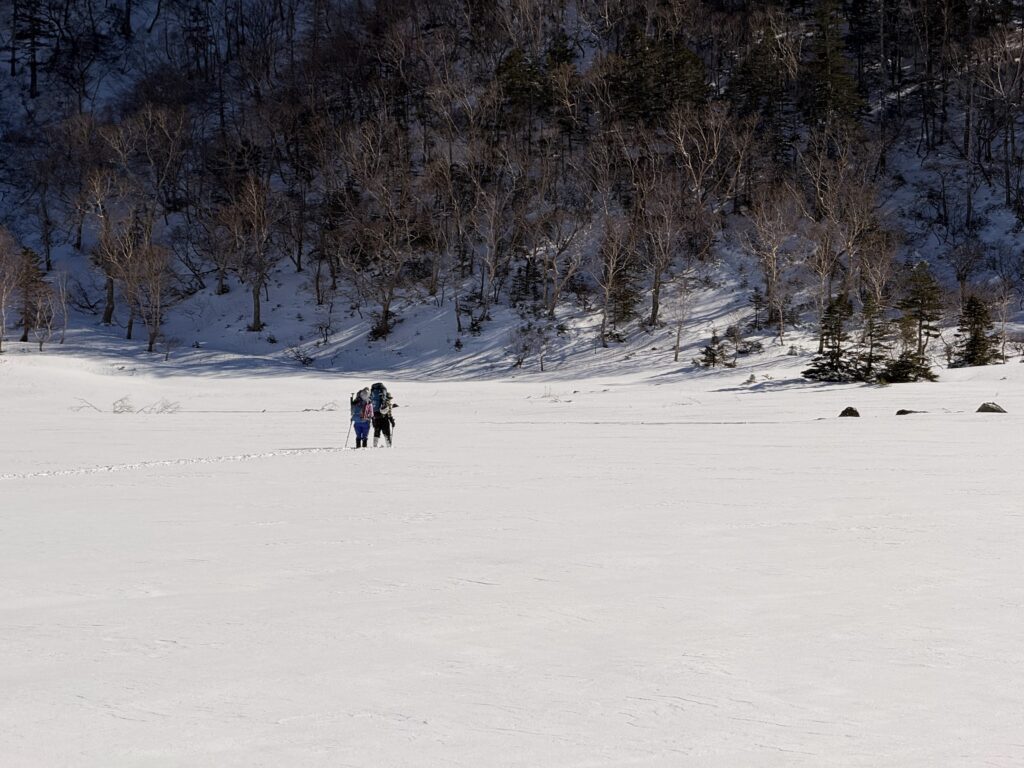弥陀ヶ池以降はトレースなし。わかん、スノーシュー、ツボ足の猛者で交代しながらラッセル。所々腰まで埋まりながら進みました。