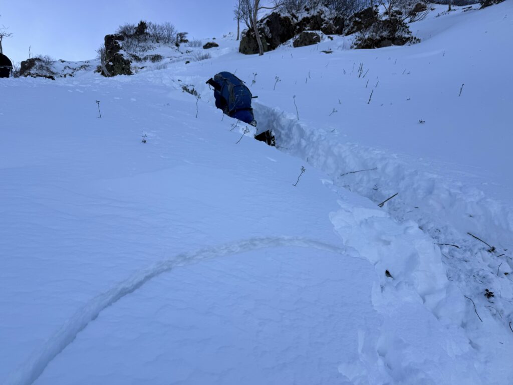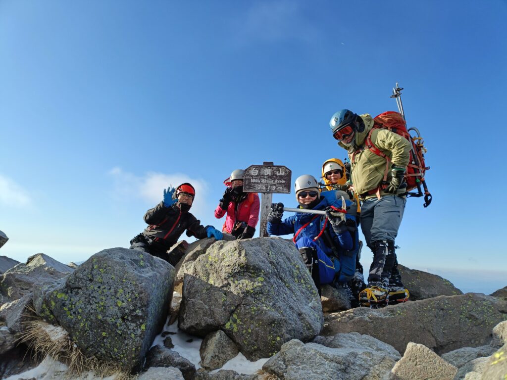 五色沼避難小屋に荷物をデポしたのち、滑落停止訓練などを行います。日が暮れる前に避難小屋に戻ってありがたく泊まらせてもらいました